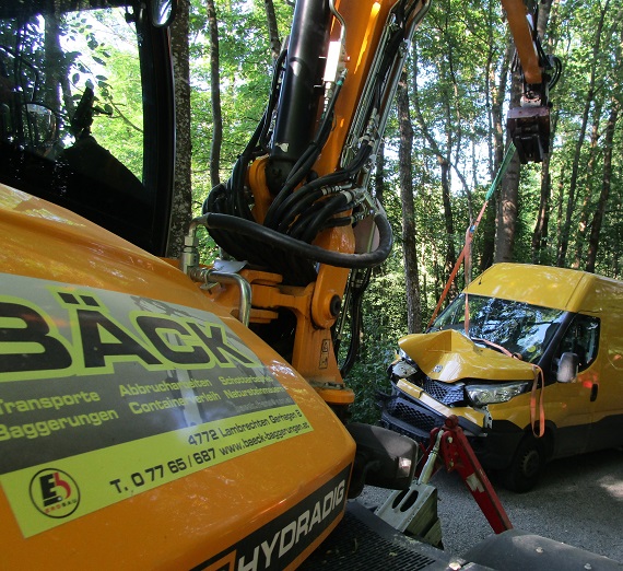 Am Einsatzort angekommen fanden wir ein KFZ vor, welches mit einem Baum kollidierte. Dem Fahrer stand zu diesem Zeitpunkt ein Schutzengel bei, da ihm nichts passiert ist. Unsere Aufgaben waren es das Fahrzeug zu sichern und die ausgelaufenen Flüssigkeiten zu binden und zu entsorgen. Weiters übernahmen wir die Bergung des Fahrzeuges mit einem Bagger der Firma Bäck.