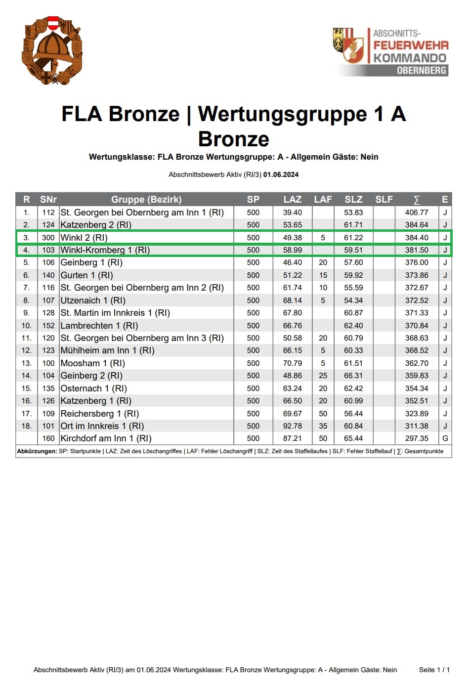 2. Bewerbsgruppe Winkl: Bronze 3. Rang