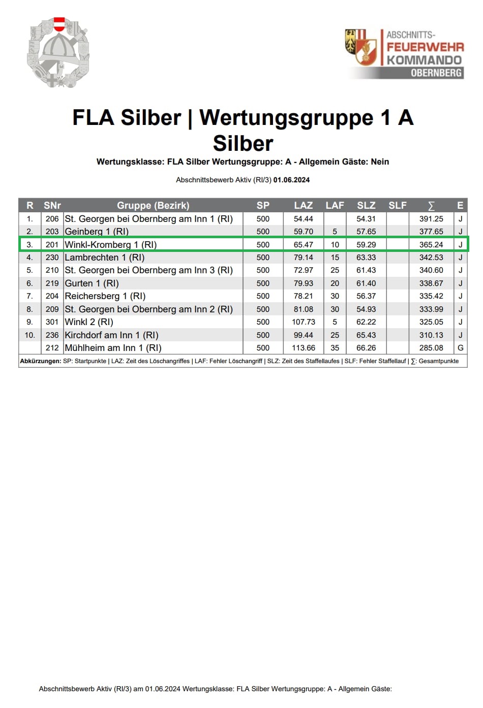 1. Bewerbsgruppe Winkl-Kromberg: Bronze 4. & Silber 3. Rang